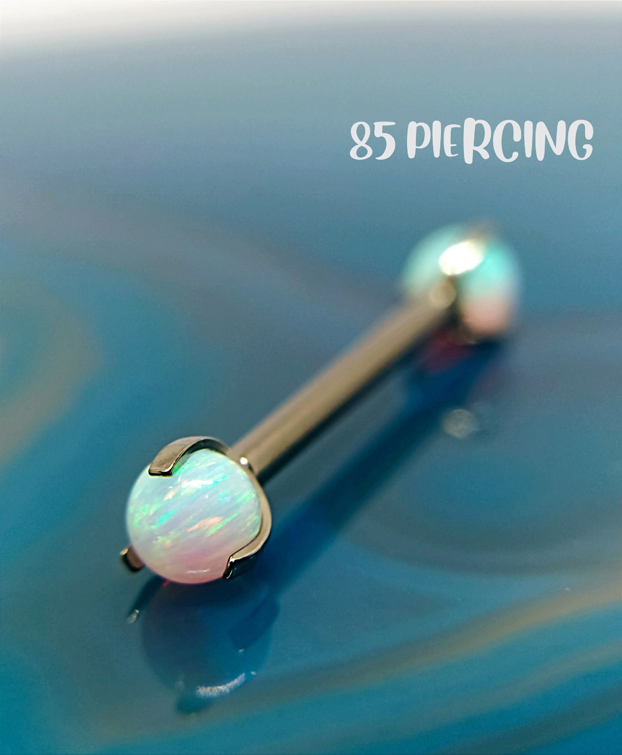 BARBELL OPALA SINTÉTICA BRANCA TITÂNIO